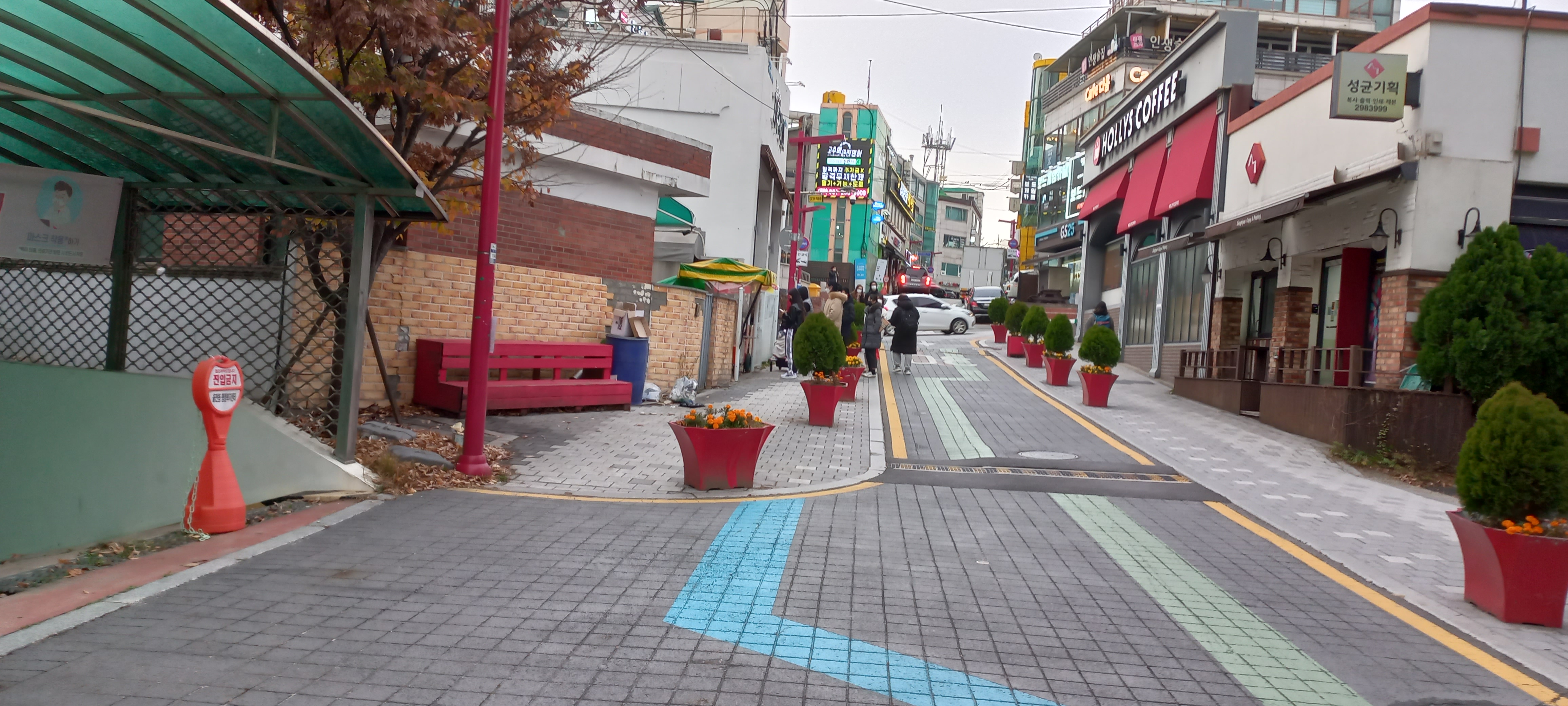 광양 양와당 중마점, 광양이나 순천에 놀러가면 한 번 쯤 가볼만 한 이색카페 주의의 모습은 위 사진과 같습니다. 다소 삭막하게 느껴지는 거리에서 양와당이 지나가는 분들에게 쉼을 주는 공간의 역할을 다 하고 있네요.
