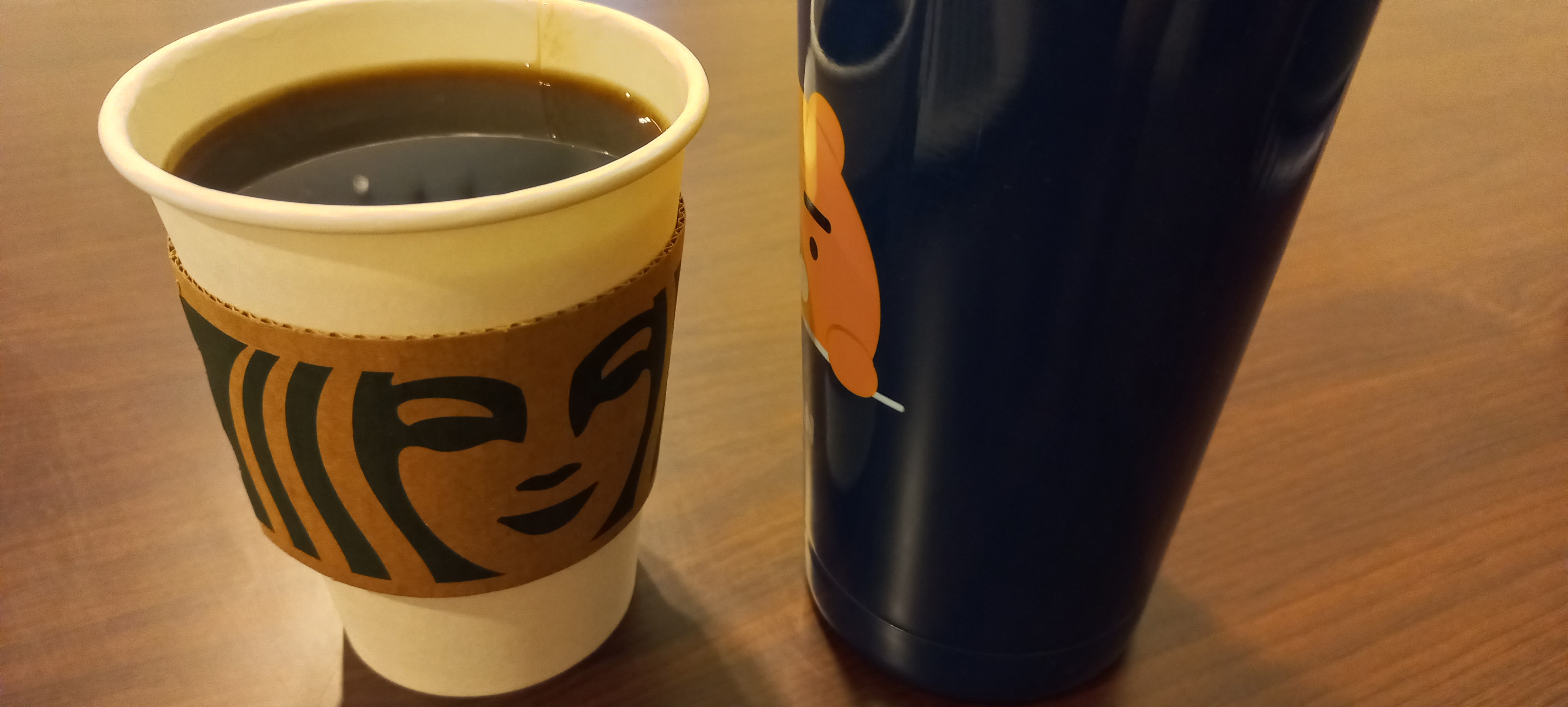 이런 갈등을 살짝 하고 있는데 스벅 직원이 바로 "개인컵 사용 안되세요~ 종이컵으로 드릴께요" 라고 하는 것이다. 왜 안되나고 물어보고 싶었으나 너무 초보티가 나는 것 같아서.... 그냥 "아~ 네~"하고 말았다 ㅋㅋㅋ 출근하고 서치해보니 코로나때문에 개인컵으로는 서빙이 안된다는 것 같았다. 흠....